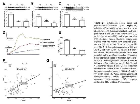 氫硫化物生成酶表達下調(diào)在足月和早產(chǎn)分娩中下調(diào)絨毛膜15-羥基前列腺素脫氫酶的表達