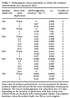 測量指標:沉積物漿液在厭氧培養中產生甲烷的速率。