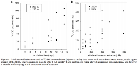 使用13C標記的甲烷(13C-CH?)作為示蹤劑,在不同深度水樣中進行培養,通過檢測產生的13C標記的無機碳(13C-DIC)來量化甲烷氧化潛力。