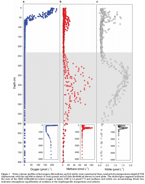 高分辨率地球化學剖面:構建了水體中甲烷(CH?)、氧氣(O?)、亞硝酸鹽(NO??)等的高分辨率垂直剖面(圖1),以精確描繪OMZ的空間結構并定位甲烷富集區。