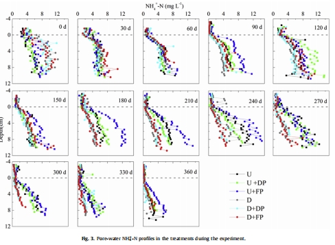 孔隙水:銨態氮的垂直剖面濃度。