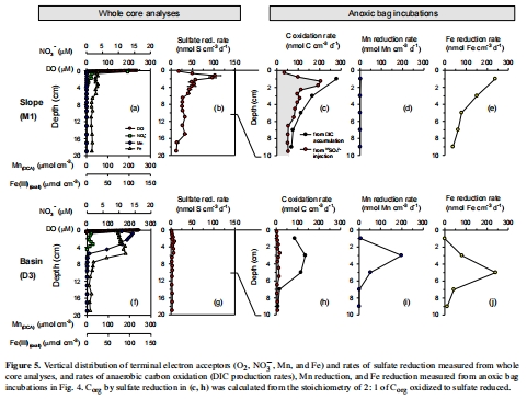 測量指標(biāo):使用3?S放射性示蹤劑測定的硫酸鹽還原速率垂直剖面。