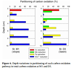 測量指標(biāo):通過整合上述速率計(jì)算出的有氧呼吸、錳還原、鐵還原、硫酸鹽還原對(duì)總Corg氧化的百分比。