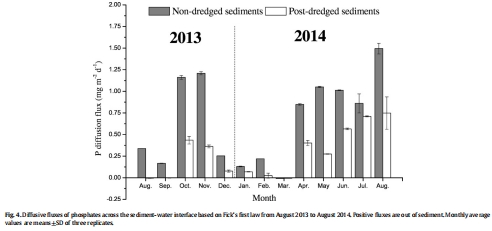 研究意義:圖4顯示,疏浚沉積物的磷通量比未疏浚沉積物降低58%,直接證明疏浚可有效抑制內(nèi)源磷負荷,為湖泊管理提供定量依據(jù)。