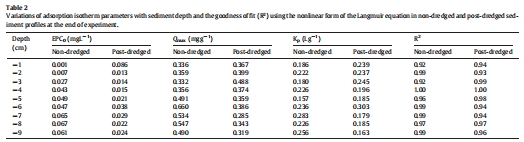 研究意義:圖7和表2顯示,疏浚后表層沉積物的EPC0、Qmax和Kp值升高,表明其磷吸附能力增強,這有助于“捕獲”上覆水中的磷,進一步減少釋放。