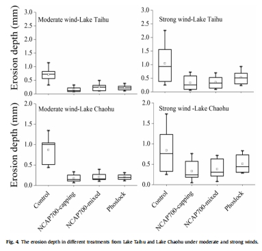 地球工程材料能增強(qiáng)沉積物穩(wěn)定性:Phoslock® 和NCAP700的添加均能顯著提高表層沉積物的抗侵蝕能力,降低再懸浮強(qiáng)度和侵蝕深度,其中NCAP700覆蓋方式的效果最為突出。