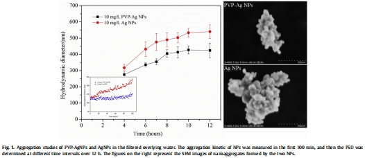 納米顆粒表征:對商用無涂層和PVP涂層AgNPs進行形貌、粒徑、Zeta電位等表征,并研究其在太湖上覆水中的聚集動力學(xué)和溶解特性。