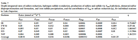 研究意義:圖5和 圖6是本研究最重要的量化成果。它們清晰地表明,當(dāng)上覆水硫酸鹽濃度低于~500 μM時(shí),有機(jī)硫的貢獻(xiàn)變得至關(guān)重要(η > 50%)。特別是在蘇必利爾湖(~40 μM)這樣的超低硫酸鹽環(huán)境中,η值可大于1,甚至達(dá)到3以上(表7),意味著硫酸鹽還原完全由內(nèi)部來源支撐。這為預(yù)測(cè)不同環(huán)境中有機(jī)硫的重要性提供了定量工具。