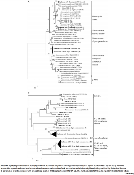 淡水養殖池塘沉積物中氨氧化細菌和古細菌的垂直分離和系統發育特征