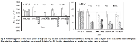 數據來源:圖3(caption: "Nutrient apparent benthic fluxes(NABF) of PO and NH")。