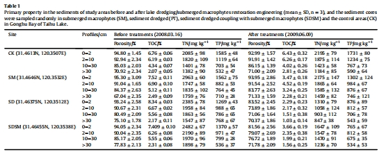 測量指標:不同處理區沉積物的孔隙度、總有機碳、總氮、總磷含量,按深度分層分析。