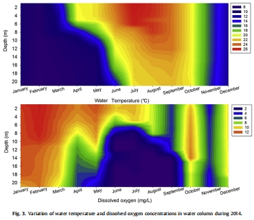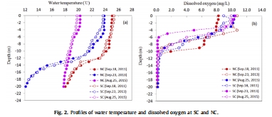 測量指標:水柱中溫度、DO和TP濃度隨深度的變化。