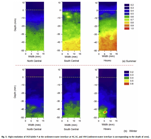 DGT-活性磷(DGT-labile P)的高分辨率分布(直接揭示磷釋放的活性和界面過程)