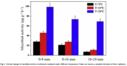 數(shù)據(jù)來源:圖1(caption: "Vertical changes of microbial activity in sediments incubated under different temperature")。