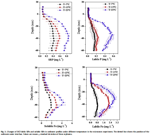 溫度對沉積物中磷流動的影響微觀實驗和田間試驗