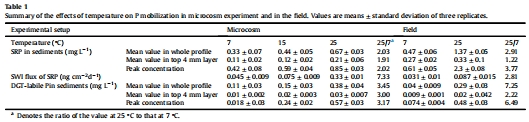 Effects of temperature on phosphorus mobilization in sediments in microcosm experiment and in the field