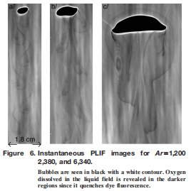 總氧傳質速率:通過分析長時間后(氧在間隙內已擴散均勻)的PLIF圖像,計算氣泡釋放到液體中的總氧質量。
