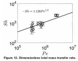 數據來源:總傳質速率(以舍伍德數形式)隨佩克萊特數的變化關系展示在 文檔圖12中。