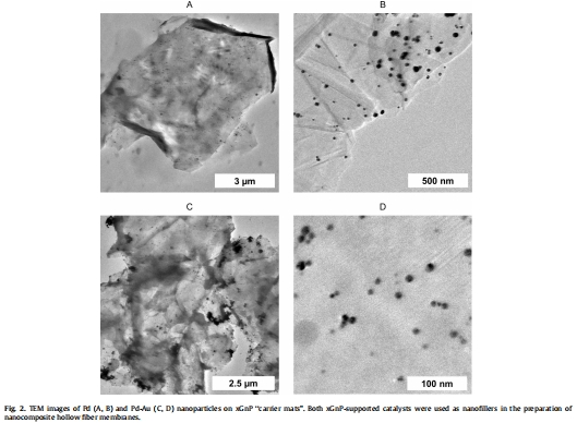 成功實(shí)現(xiàn)了催化中空纖維膜的制備:證實(shí)了以xGnP負(fù)載的Pd和Pd-Au催化劑作為填料進(jìn)行中空纖維紡絲是完全可行的,為大規(guī)模制備催化膜奠定了基礎(chǔ)。