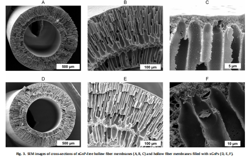 數(shù)據(jù)來(lái)源:含填料與不含填料的中空纖維膜的SEM截面圖像對(duì)比展示在 文檔圖3中。