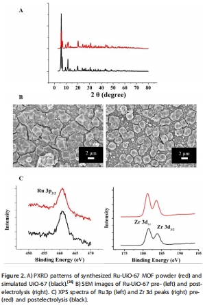研究意義:從化學鍵合層面證實釕催化劑已成功引入MOF骨架。XPS譜圖(文檔圖2C)清晰顯示了釕(Ru 3p)和鋯(Zr 3d)的特征峰,且電解前后峰位和形狀未發生明顯變化,表明釕活性中心在催化反應中保持了穩定的化學狀態和配位環境,證明了催化劑的穩定性。