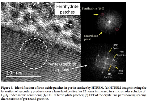 數據來源:反應后黃鐵礦表面的HRTEM圖像及FFT分析展示在 文檔圖5中。