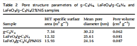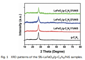 晶體結(jié)構(gòu):XRD驗證g-C?N?的層狀結(jié)構(gòu),NiS和LaFeO?的衍射峰因高分散性未檢測到(圖1)。