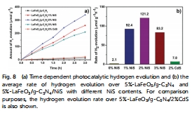 材料有效性:NiS修飾的LaFeO?/g-C?N?異質(zhì)結(jié)實現(xiàn)了高效可見光產(chǎn)氫,最優(yōu)性能達(dá)121 μmol g?1 h?1(表觀量子效率2.01%)。