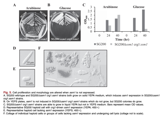 2. ssm1基因重要性:通過(guò)刪除實(shí)驗(yàn)顯示ssm1是細(xì)胞存活所必需的,缺失導(dǎo)致細(xì)胞裂解。來(lái)自圖5。研究意義:表明ssm1對(duì)線粒體功能和細(xì)胞完整性關(guān)鍵,間接支持NATs可能通過(guò)調(diào)節(jié)此類(lèi)基因影響休眠。