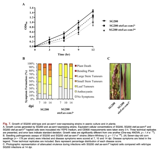 4. 生長(zhǎng)率和致病性:as-ssm1表達(dá)降低細(xì)胞生長(zhǎng)率和植物感染中的毒力。來(lái)自圖7A和7B。研究意義:表明NATs表達(dá)可模擬休眠狀態(tài)下的代謝減緩,支持其參與發(fā)育調(diào)節(jié)。