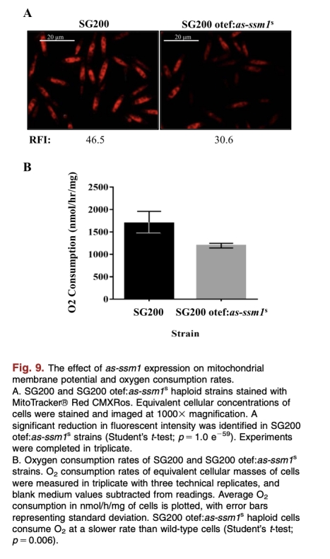 7. 氧消耗率:使用Clark-type微呼吸計(jì)(丹麥Unisense電極)測(cè)量顯示as-ssm1表達(dá)降低氧消耗。來(lái)自圖9B。研究意義:定量證明呼吸作用減少,強(qiáng)化NATs在抑制代謝中的角色。