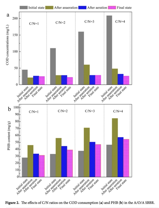 3 COD消耗和PHB含量變化數(shù)據(jù),來自Figure 2。研究意義是證明C/N比影響碳源存儲和利用,高C/N比(如4)增加PHB積累(38.10mg/g),促進(jìn)反硝化,減少N2O排放,闡明碳可用性與微生物活性的關(guān)系。