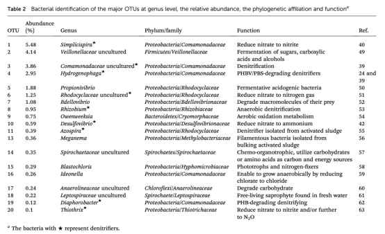 4 微生物群落組成數據:通過高通量測序分析生物膜中菌門、綱、屬水平分布,來自圖8和表2。研究意義是發現變形菌門為主(75.6%),反硝化菌如Simplicispira豐度高(16%),闡明微生物驅動反硝化過程,為群落調控提供基礎。