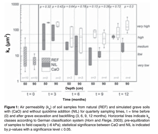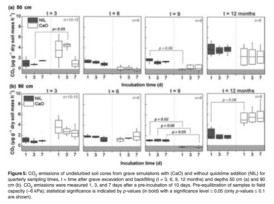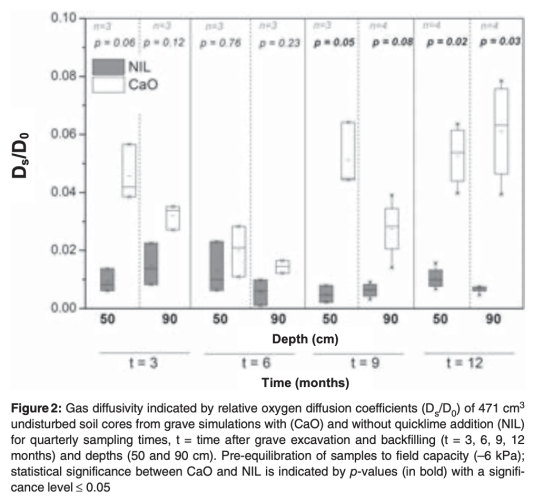 Changes in soil aeration and soil respiration of simulated grave soils after quicklime application