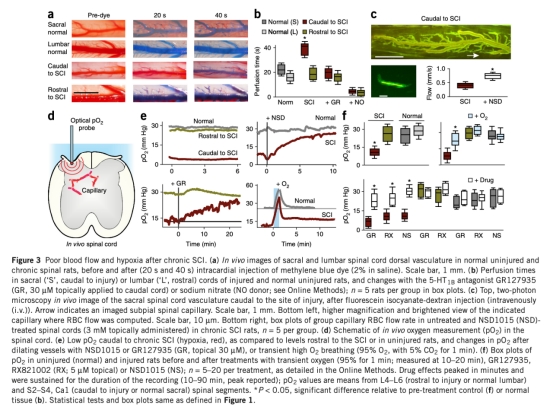 3 氧氣分壓(pO2)數(shù)據(jù)來自Fig.3,使用丹麥Unisense電極測量,顯示損傷部位以下脊髓pO2顯著降低(缺氧),治療后恢復(fù),研究意義是直接量化缺氧狀態(tài),驗(yàn)證干預(yù)措施的有效性。