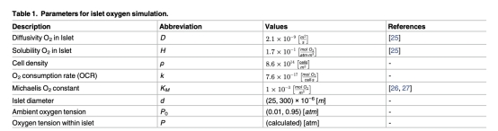 3 體外存活率數據:體外實驗顯示,小胰島(40-60μm)在21%氧下存活率最高,75%和95%氧有毒性(存活率顯著降低),1%氧存活率低。大胰島在低氧下中央壞死明顯,高氧改善存活,來自圖2A、2B和2D。研究意義在于驗證模擬結果,表明氧環境對存活有直接影響,高氧有毒但適度高氧(如50%氧)有益。