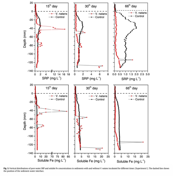 1. 苦草根際形成鐵斑塊,富集沉積物中的磷,作為臨時磷庫,但可能降低根際磷生物有效性。