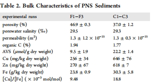 數據:測量了孔隙度、孔隙水鹽度、滲透率、有機碳含量、酸揮發性硫化物(AVS)、同步提取金屬(SEM)及總金屬濃度(Cu, Zn, Fe)。