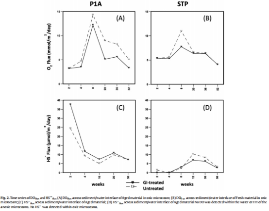 數(shù)據(jù):在無(wú)氧條件下,輻照對(duì)硫化氫通量的影響因尾礦來(lái)源而異。在陳化尾礦中,輻照并未刺激硫化氫通量;而在新鮮尾礦中,輻照在特定時(shí)間點(diǎn)(如第12、36周)提高了硫化氫通量。