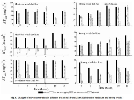 材料能有效控制內源磷釋放:兩種材料均能顯著降低再懸浮期間上覆水的SRP濃度和沉積物-水界面的磷釋放通量,Phoslock®的整體表現略優于NCAP700。