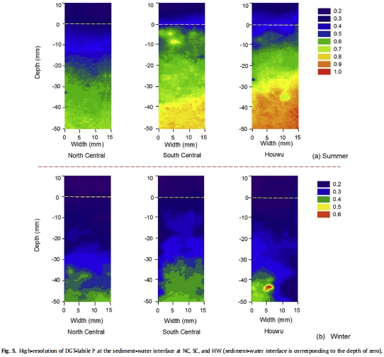 沉積物活性磷高分辨率分布(來自圖5, 7):