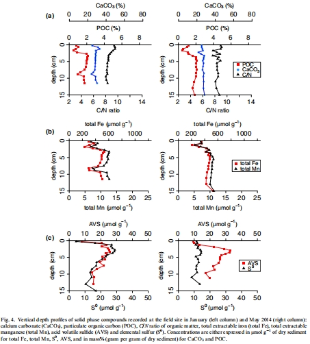 它誘導了亞氧化區(qū)的擴展(達5厘米)和pH極值,促進了碳酸鹽和硫化鐵礦物的溶解。