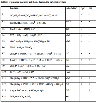 揭示氧化(如好氧呼吸)和缺氧(如硫酸鹽還原)過程對孔隙水pH和碳酸鈣飽和度的相對貢獻(xiàn)。