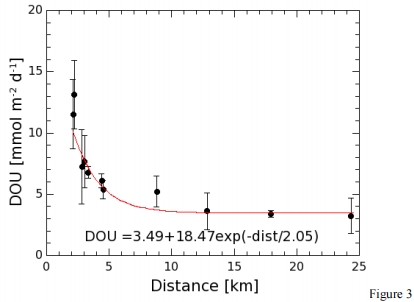研究意義:OPD的淺層化表明近河口區(qū)域好氧呼吸速率高,反映了陸源有機質(zhì)輸入的影響。氧通量計算(圖3)顯示擴散氧通量(DOU)從河口向海方向指數(shù)下降(12.3至3.8 mmol O? m?2 d?1),這直接關(guān)聯(lián)于有機碳礦化強度,為評估沿海碳匯/源角色提供關(guān)鍵參數(shù)。