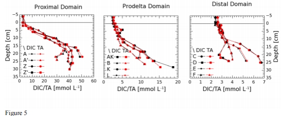 孔隙水DIC和TA濃度剖面(來自圖5):
