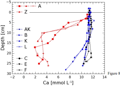 鈣和硫酸鹽濃度剖面(來自圖7和圖8):
