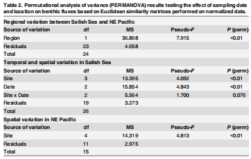 多元方差分析(PERMANOVA):檢驗區(qū)域和時空差異(Table 2)。