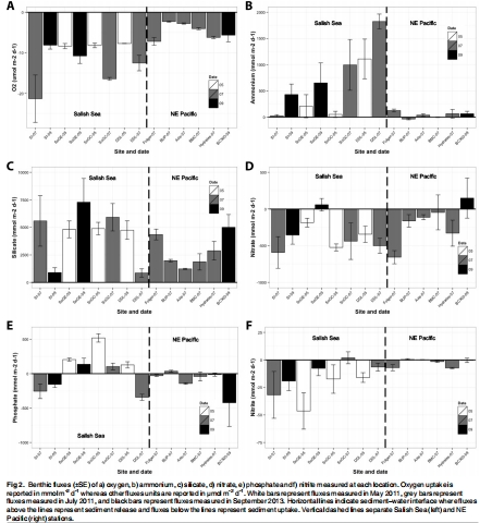 研究意義:這些通量直接量化了沉積物-水界面的生物地球化學過程,如有機質(zhì)礦化速率。通量變異反映了環(huán)境梯度的影響,例如東北太平洋站點通量普遍低于薩利希海,凸顯了深度和氧化還原條件對生態(tài)系統(tǒng)功能的控制。
