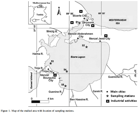 采樣設(shè)計:2011年3月,在Bizerte lagoon選擇5個代表性站點(diǎn)(S1-S5),基于污染源分布(如工業(yè)、農(nóng)業(yè))采集表層沉積物(0-10 cm)。站點(diǎn)位置通過地圖可視化(Figure 1)。