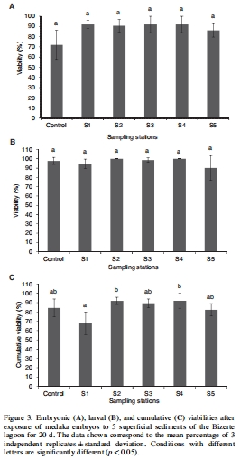 毒性評估:利用medaka胚胎幼蟲測定法量化Bizerte lagoon5個站點(diǎn)沉積物的毒性,揭示其生態(tài)風(fēng)險。